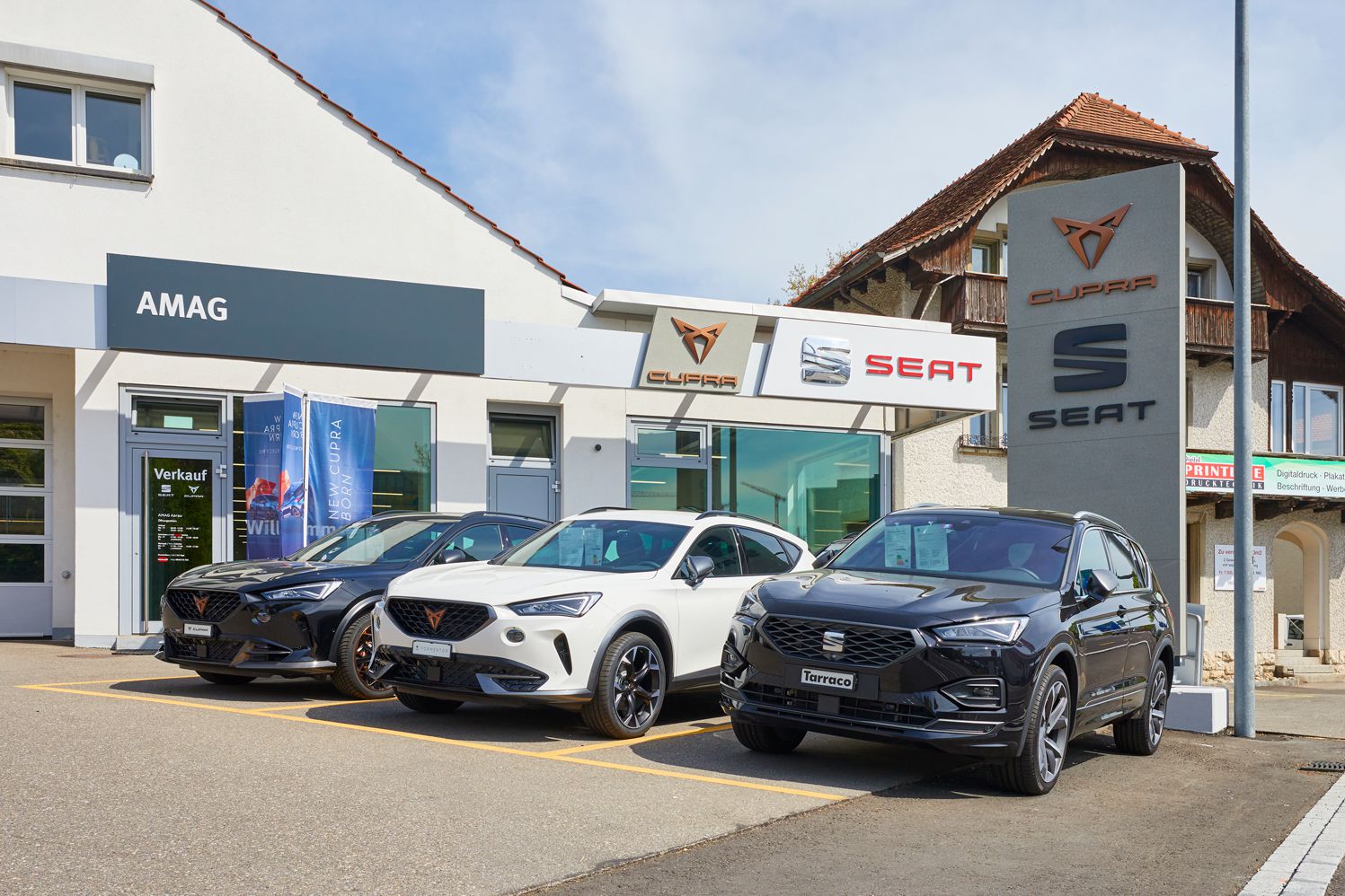 Die AMAG Aarau ist Ihr kompetenter Ansprechpartner für Neuwagen, Occasionen und zuverlässige Serviceleistungen. Als Verkaufspartner der Marken Audi, SEAT, CUPRA und AMAG Occasionen beratet Sie unser Verkaufspersonal rund um den Autokauf - von Probefahrt, Leasing und Kauf bis hin zur Ablieferung. Entdecken Sie das vielfältige Angebot. In unserer Werkstatt kümmert sich unser Team mit bestem Service um Ihren Radwechsel, Reifenwechsel, Autoservice, saisonalen Check etc. Unser Karosserie und Lack Team repariert mit höchster Sicherheit Ihren Glas-, Kollisions- oder Hagelschaden etc. und wickelt Ihren Fall mit der Versicherung ab. Rund um die Uhr können Sie bequem und online Ihren Werkstatt-Termin vereinbaren oder einen Schaden melden.