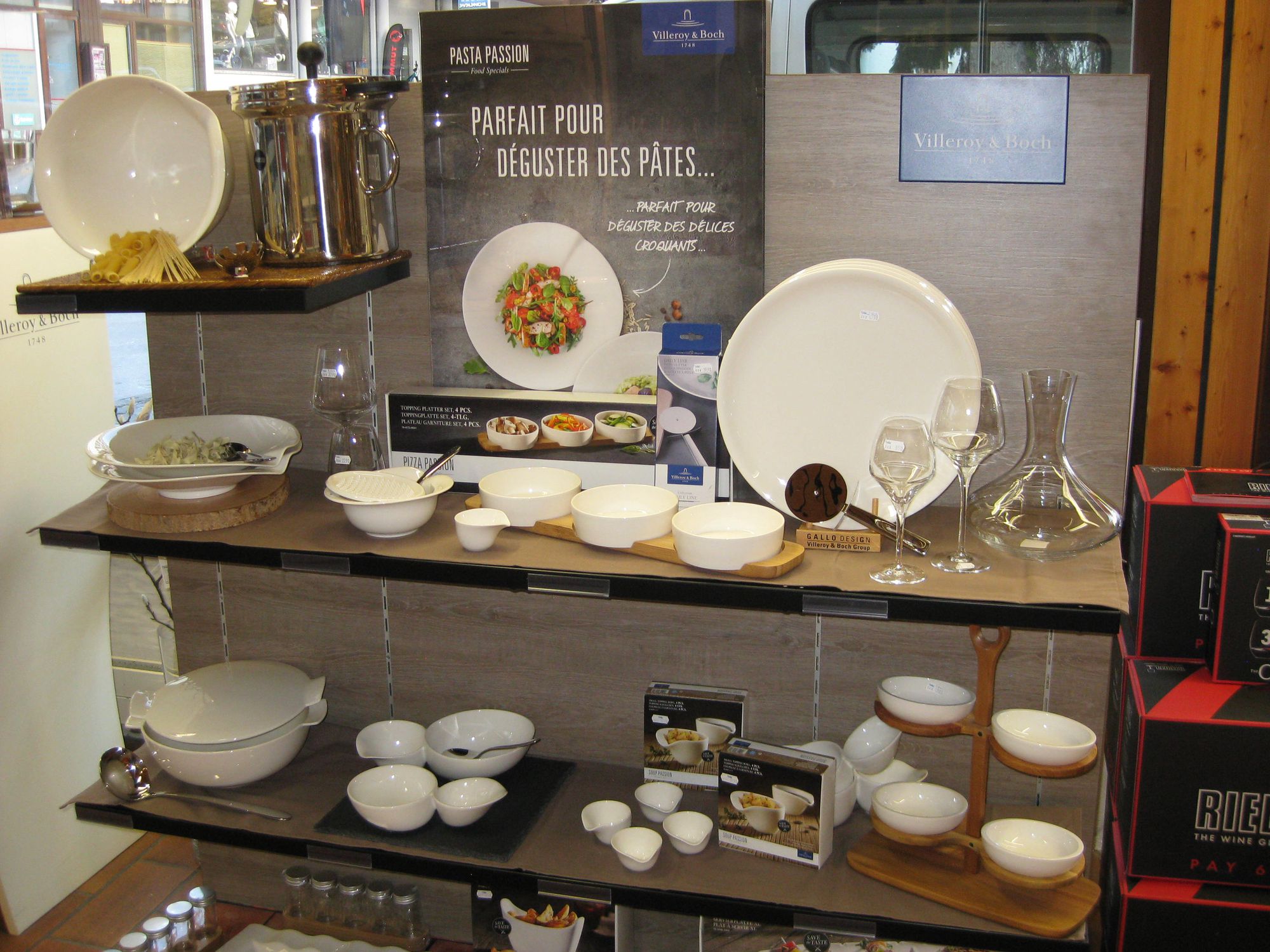 La porcelaine Villeroy & Boch et les article cadeaux Alessi côtoient tous les ustensiles indispensables à la décoration et à la cuisine.