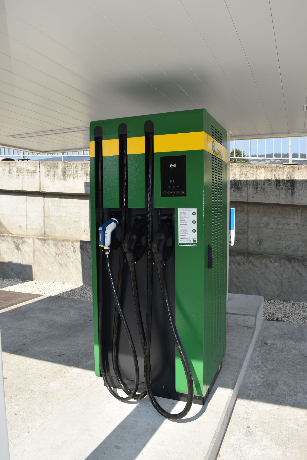 Laden Sie Ihr Elektrofahrzeug bei AGROLA bequem und nachhaltig mit Schweizer Solarstrom - rund um die Uhr. AGROLA baut das Ladenetz stetig aus, mit Schnell-Ladestationen bis 320 kW, teils überdacht und mit Zugang zu WC oder TopShop. So können Sie während des Aufladens entspannt einen Kaffee geniessen oder Einkäufe erledigen. Mit der AGROLA E-Mob-App und powercard laden Sie unkompliziert ohne Abokosten - schweizweit und im Ausland dank der Partnerschaft mit Swisscharge. AGROLA AGROLA ist Ihre unkomplizierte Partnerin für Elektromobilität mit erneuerbarer Energie.