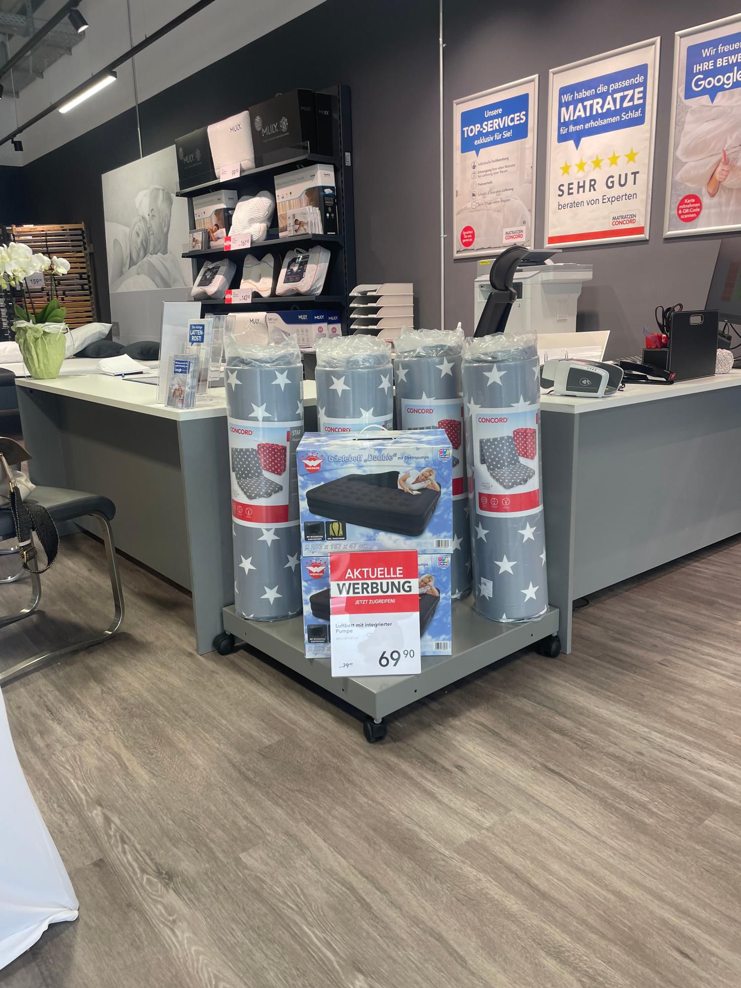 Der Matratzendiscounter hat sich auf den Verkauf von Matratzen, Lattenrosten, Toppern, Kissen, Decken, Matratzenschonern und Bettwäsche spezialisiert. Seit fast 40 Jahren helfen ausgebildete Schlafberater den Kunden individuell und kompetent bei allen Anliegen rund um das Thema "gesunder Schlaf". Hierfür wurde Matratzen Concord mehrfach in den Kategorien "Service" und "Beratung" ausgezeichnet.